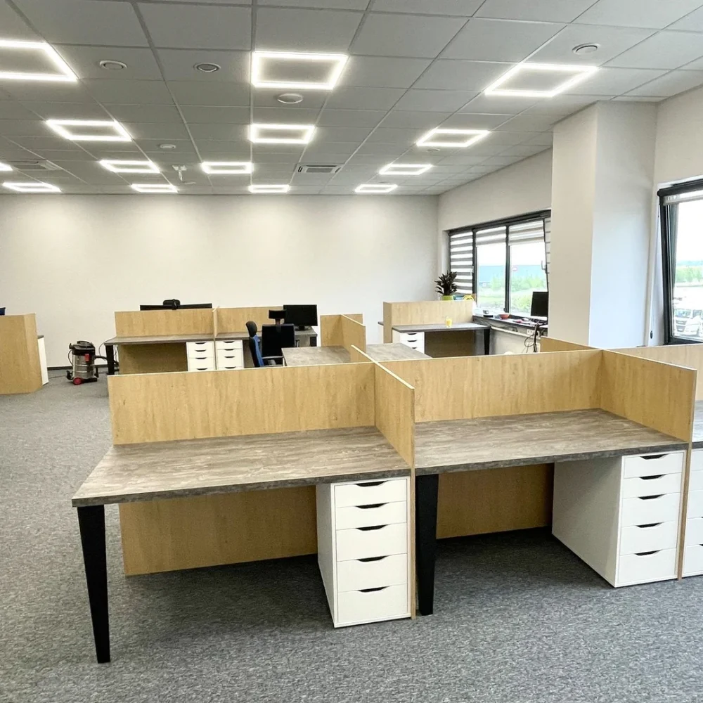 Ekipa montażowa przystępuje do instalacji mebli zgodnie z projektem, co jest na bieżąco monitorowane. Wszystkie elementy zostają dokładnie dopasowane i regulowane, ponieważ każdy detal ma znaczenie. Po zakończeniu montażu miejsce pracy jest dokładnie sprzątane tak, aby klient mógł od razu korzystać ze swojej nowej, funkcjonalnej przestrzeni.
